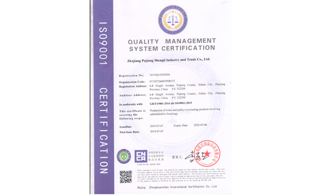 Established in 1993, located in Pujiang city - the biggest padlocks making center of China, we ZHE JIANG PUJIANG SHENG LI INDUSTRY & TRADE CO., LTD (the former PUJIANG COUNTY SHENG LI LOCK FACTORY) is a modern and high - tech professional manufacturer who is dedicated to research & development, producing and marketing of all kinds iron padlocks, steel padlocks, zinc alloy padlocks, brass padlocks and the best quality Stainless Steel padlock, now we also begin to make all kinds of pulleys (which also can be called gate wheels or door rollers) & steel hinges (which also can be called door axis).